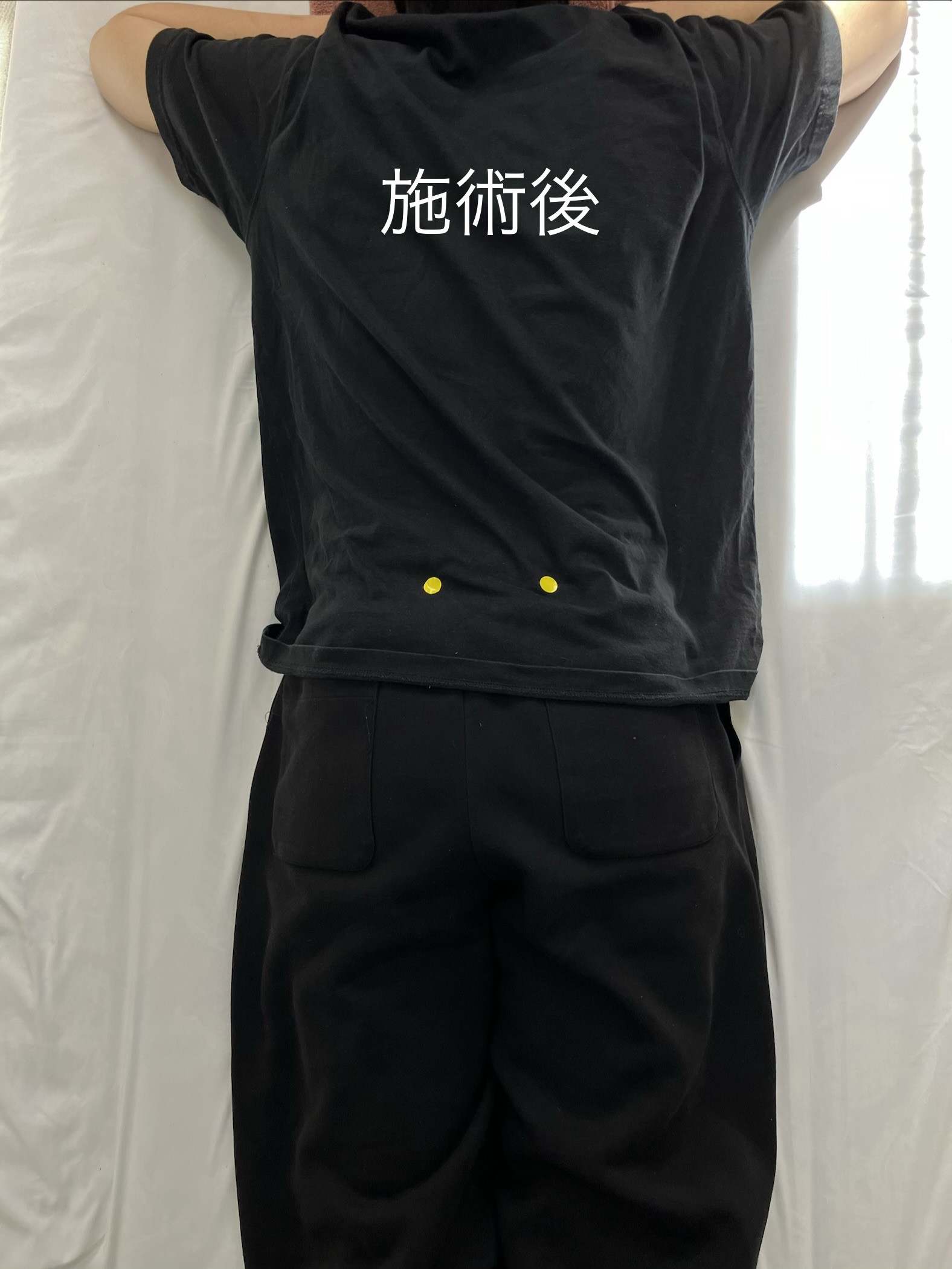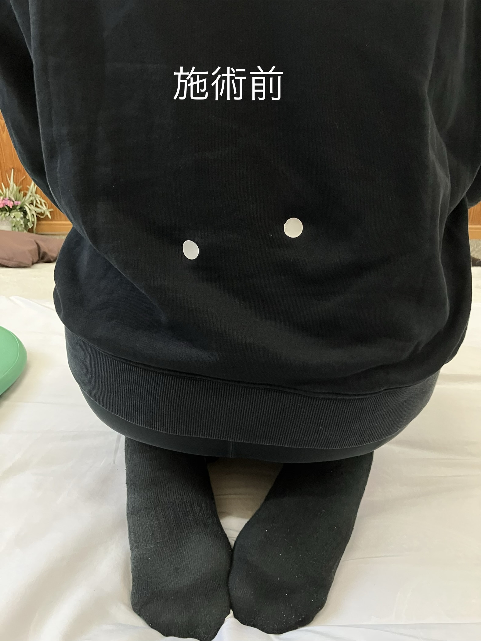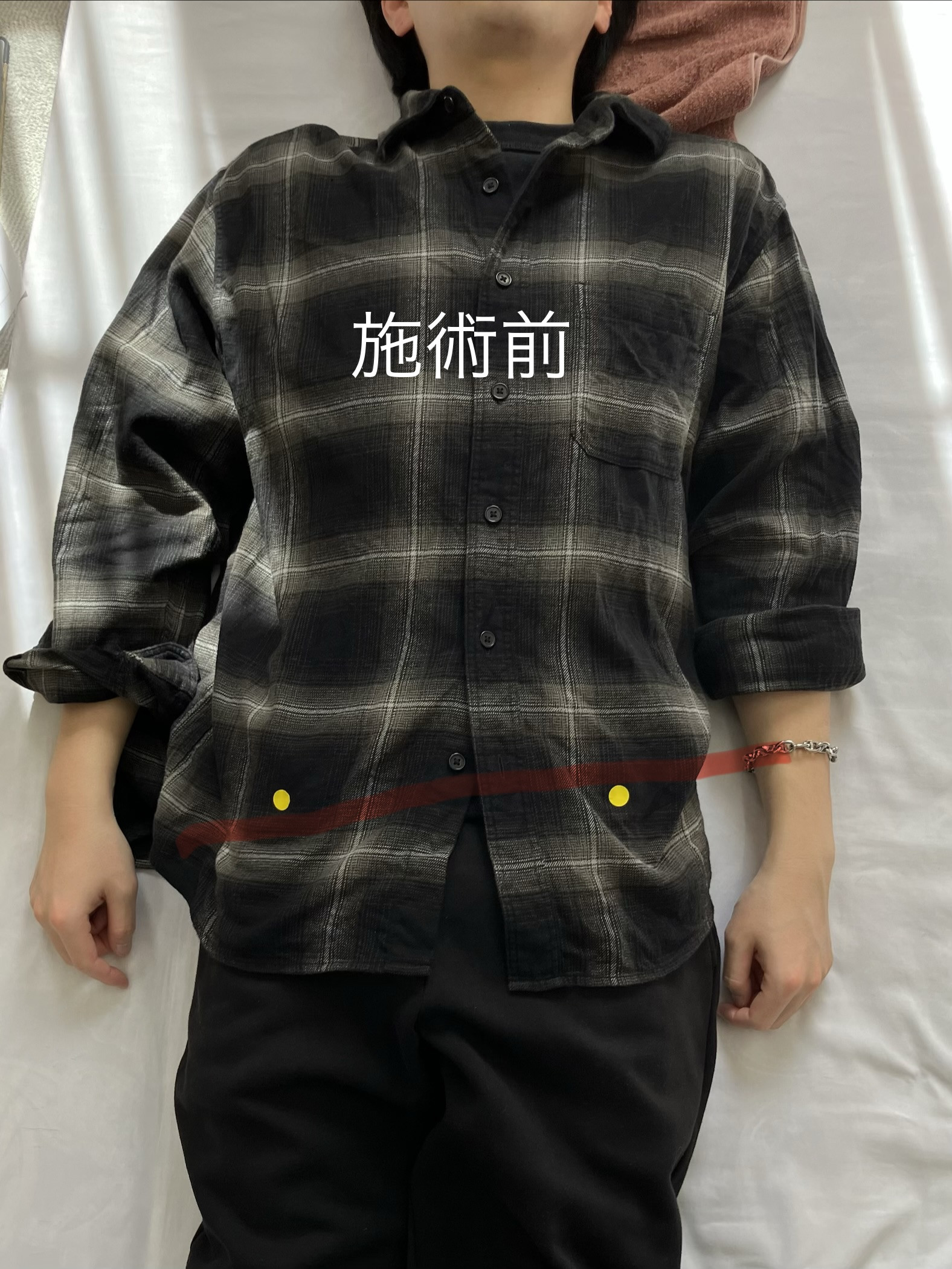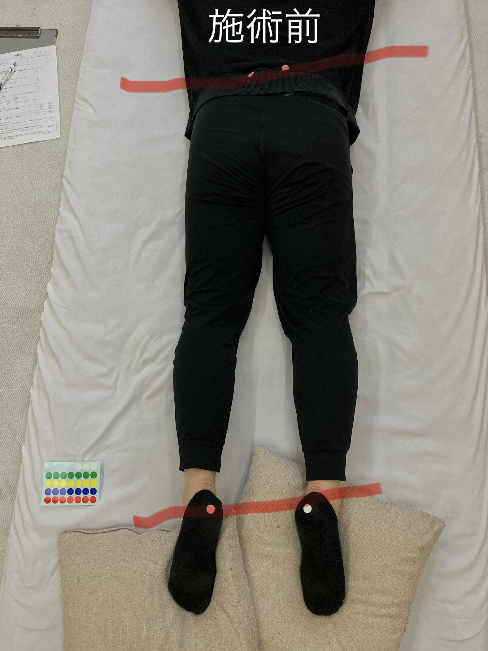 足の長さも左右差があります。施術後数回で腰痛も改善、しびれもなくなりました。